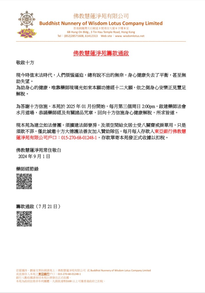 籌款通啟 佛教慧蓮淨苑籌款通啟 聯絡我們 回首頁 分享此文: 分享到 X(在新視窗中開啟) X 分享到 Facebook(在新視窗中開啟) Facebook 分享到 WhatsApp(在新視窗中開啟) WhatsApp 列印(在新視窗中開啟) 列印 分享到 Telegram(在新視窗中開啟) Telegram 以電子郵件將連結傳送給朋友(在新視窗中開啟) 電子郵件 喜歡 正在載入...