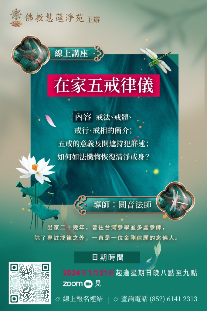 2024年「在家五戒律儀」線上課程 線上報名 聯絡我們 回首頁 分享此文: 分享到 X(在新視窗中開啟) X 分享到 Facebook(在新視窗中開啟) Facebook 分享到 WhatsApp(在新視窗中開啟) WhatsApp 列印(在新視窗中開啟) 列印 分享到 Telegram(在新視窗中開啟) Telegram 以電子郵件將連結傳送給朋友(在新視窗中開啟) 電子郵件 喜歡 正在載入...
